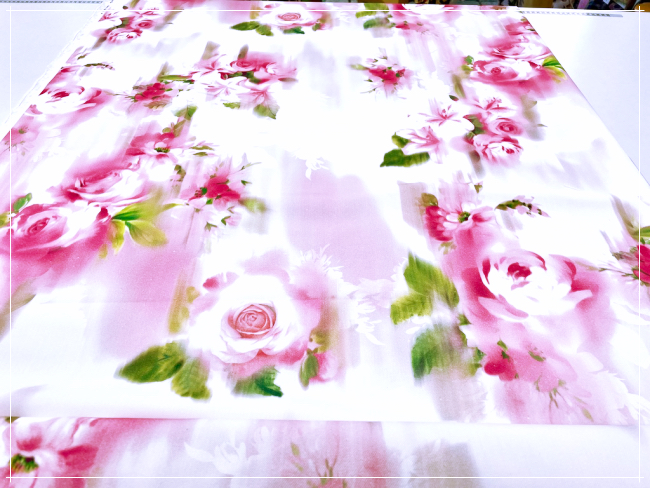 bedruckter, gestretchter Baumwollstoff eines franz. Modelabels