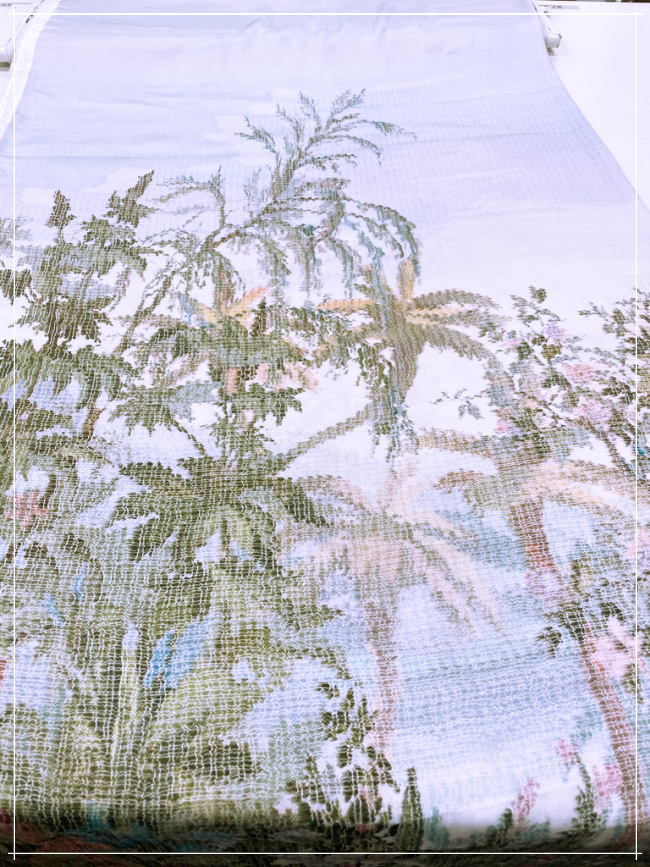 bedrucktes feines Leinen eines bekannten deutschen Modelabels