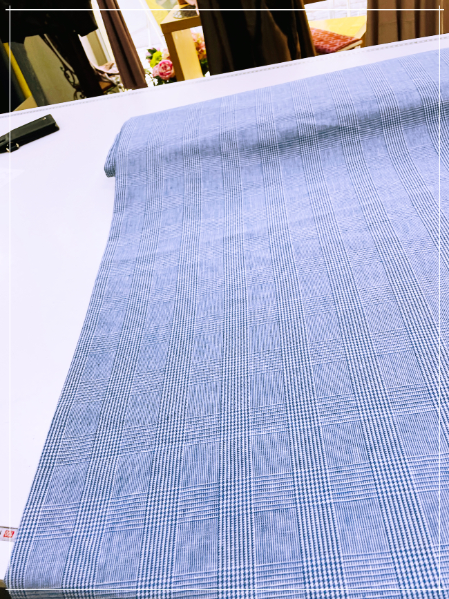 gewebtes, gemustertes Leinen eines deutschen Modelabels