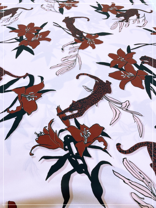 • bedruckter, gestretchter Seidencrepe, eines bekannten ital. Modelabels