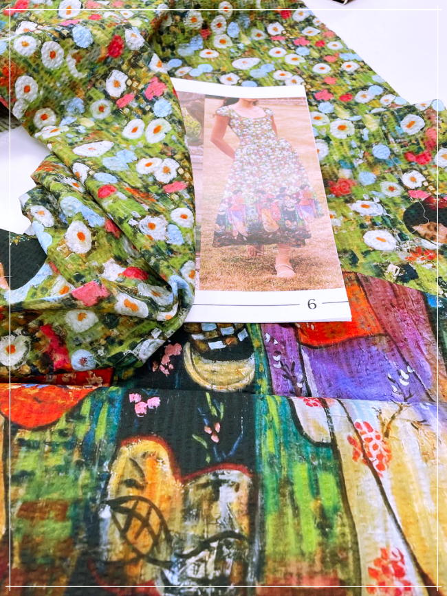 bedruckter Baumwollseersucker als Rapport, aus Italien