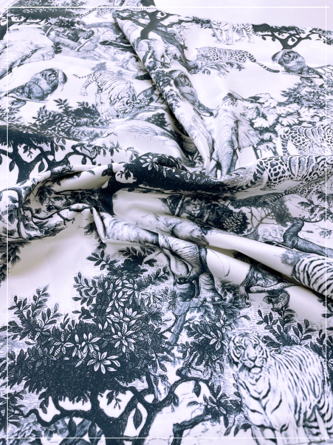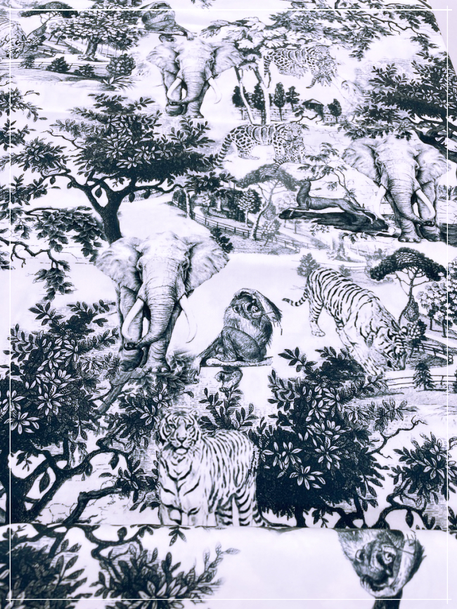 bedruckter, gestretchter Baumwollstoff mit einem Toile de Joue Druck