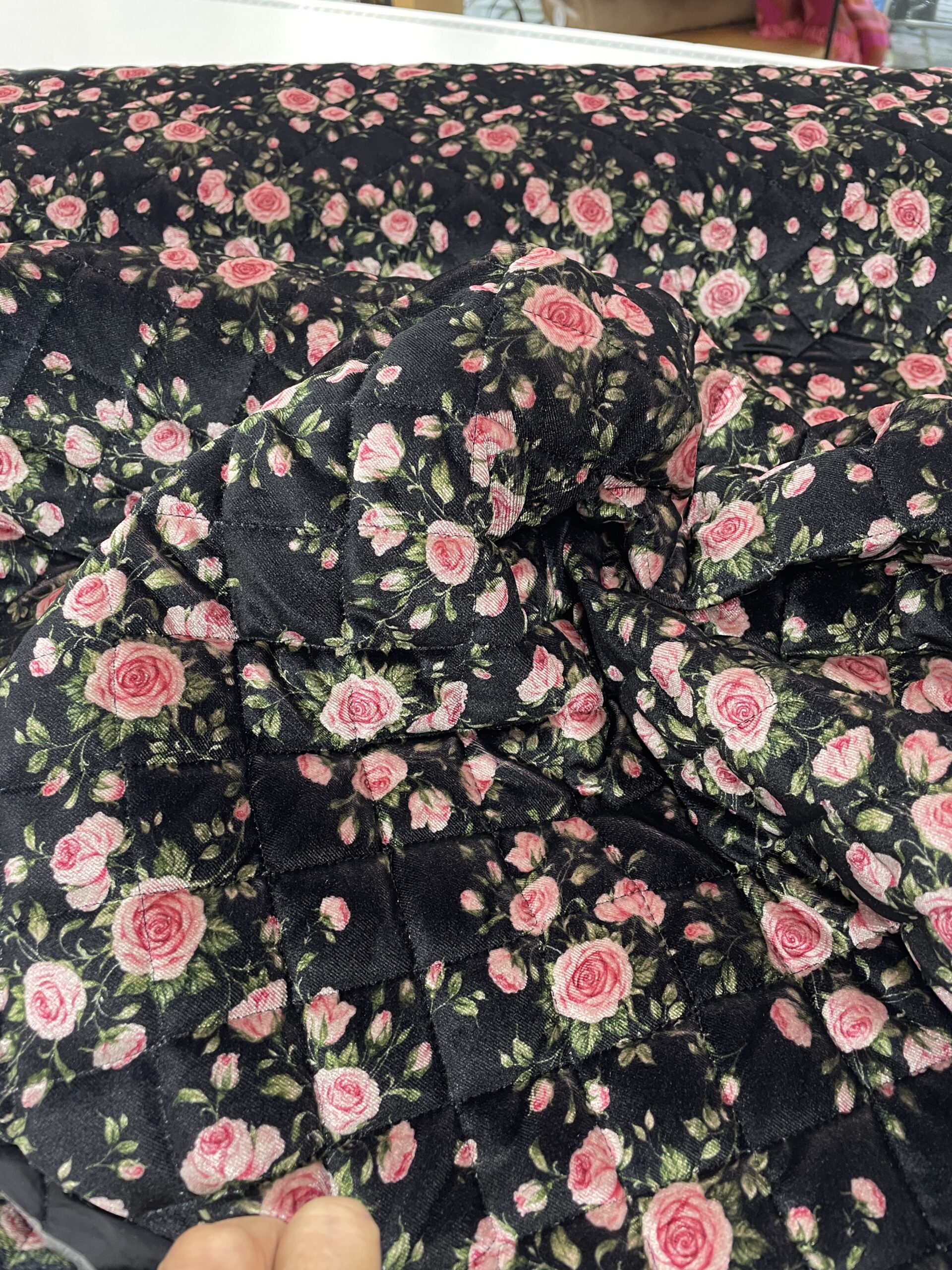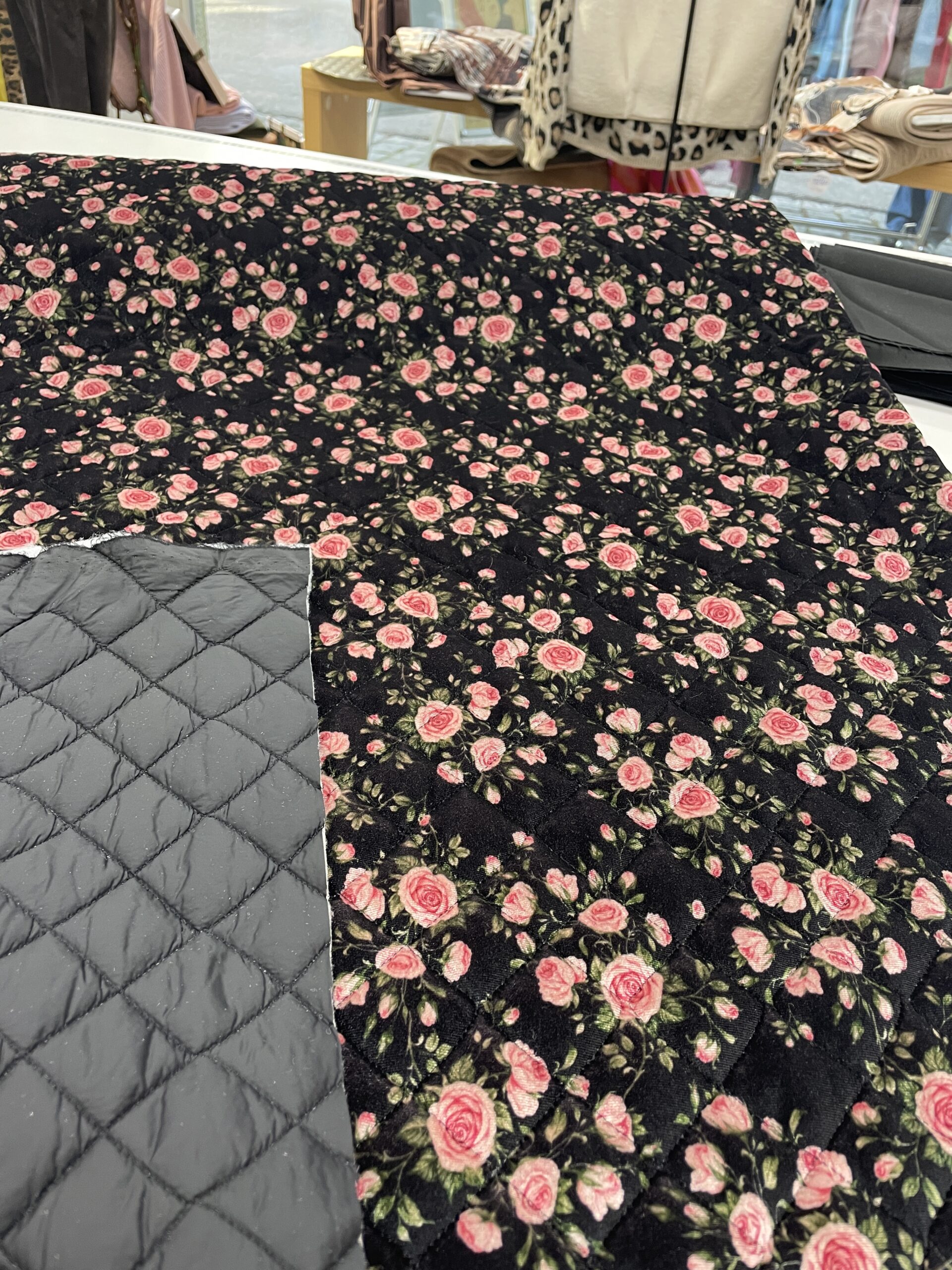 beidseitig gesteppter Viscosesamt eines ital. Modelabels